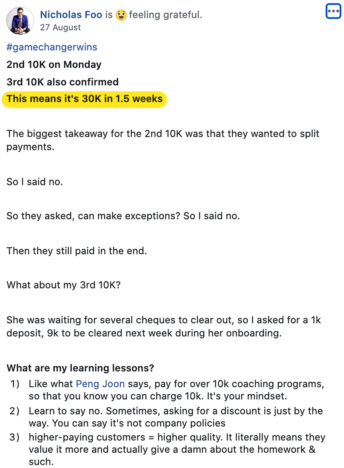 The more money I can make you now, the more likely you are to join my $30k Legacy Mentoring program in the future.